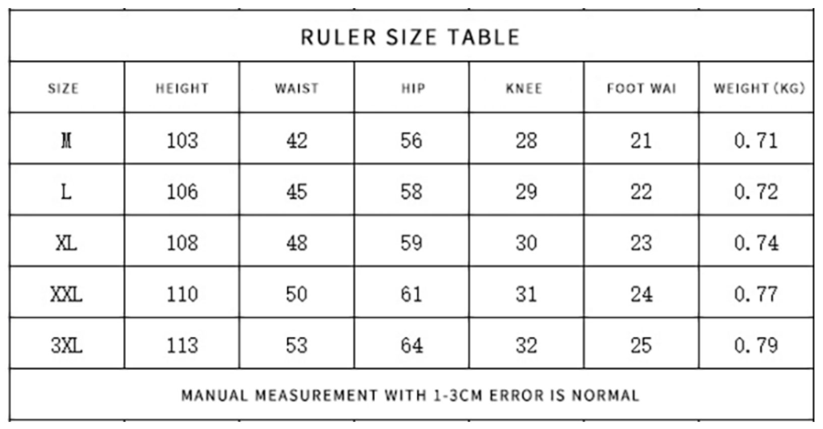 Please compare your measurements with our size chart before ordering. (Units: inch)